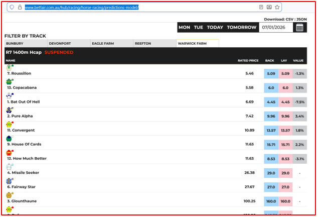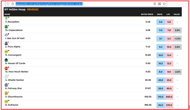 As mentioned earlier, you can view Betfair’s predicted prices at the link below for reference and comparison.
